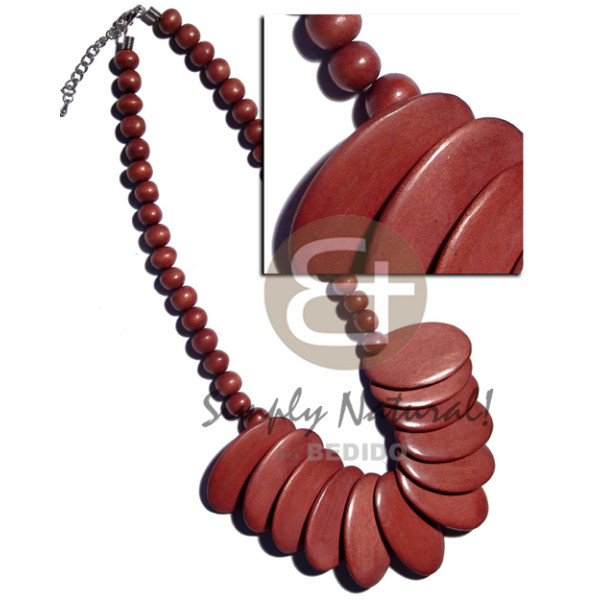 overlapping 12 pcs. dyed 30mmx45mm nat. wood ovals & 10mm nat. wood round beads..
