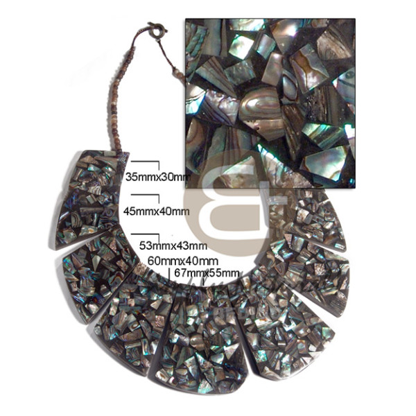 chunky cleopatra choker ( 10 flat blocks ) / paua shells chips laminated in black resin 35mmx30mm/ 4..