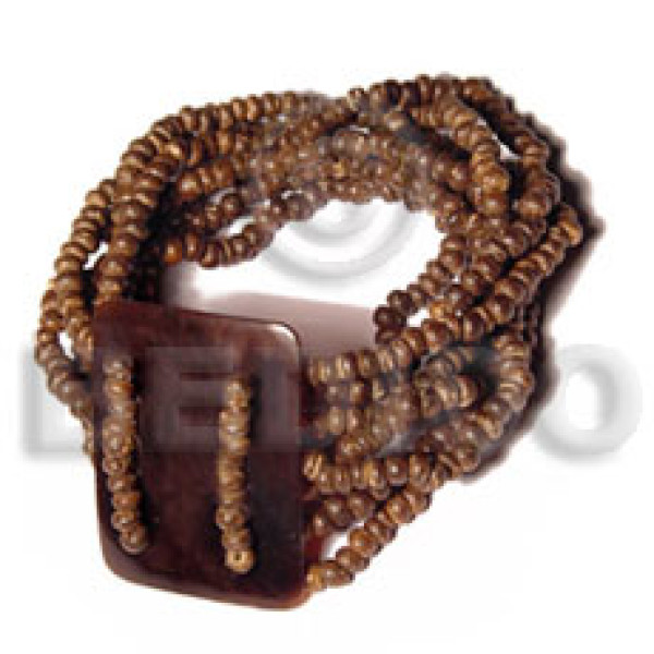 10 layers elastic 2-3mm coco Pokalet. nat. brown 35mmx30mm handpainted rectangular blacktab..