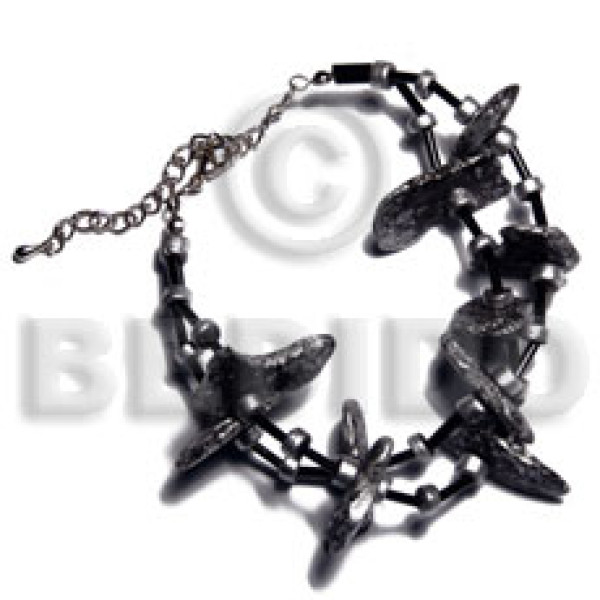 2 rows sig-id wood tube bleached/tiger/nat. brown 2-3mm coco pokalet flower..