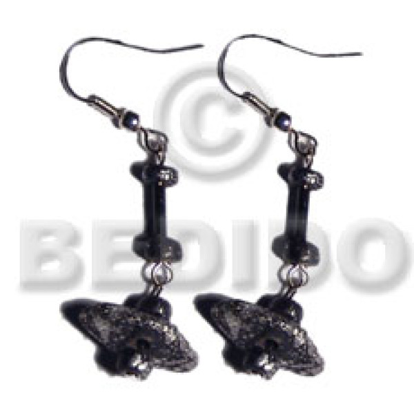 dangling single row black coco chips/Pokalet in silver metallic splashing..