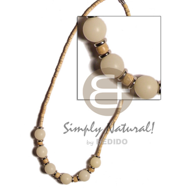 2-3 coco heishe nat. white buri beads flat round silver accent..