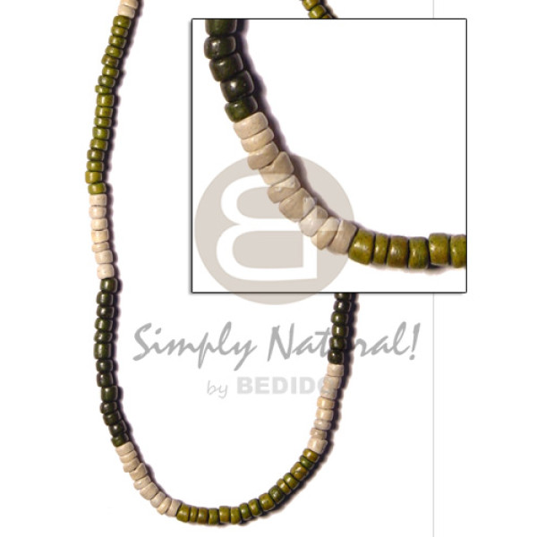 2-3mm neon green 4-5mm coco heishe light blue combination coco pokalet/glass beads..