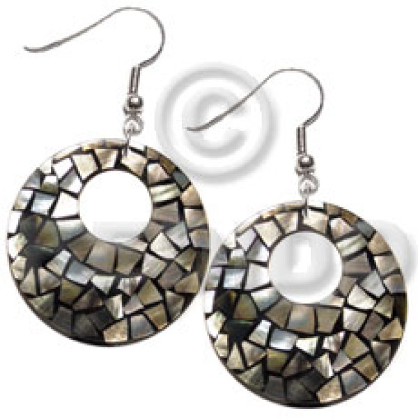dangling flat 35mm black round resin top center 10mm hole and laminated kabibe chips..