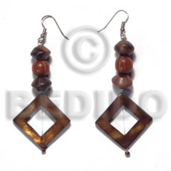 dangling 25mmx25mm diamond laminated golden amber kabibe shell rings in high gloss wood beads acce..
