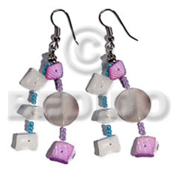 dangling 25mm/10mm round nat. hammershells glass beads and green everlasting luhuanus..