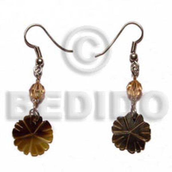 dangling 15mm grooved pastel green hammershell flower looped cut beads..