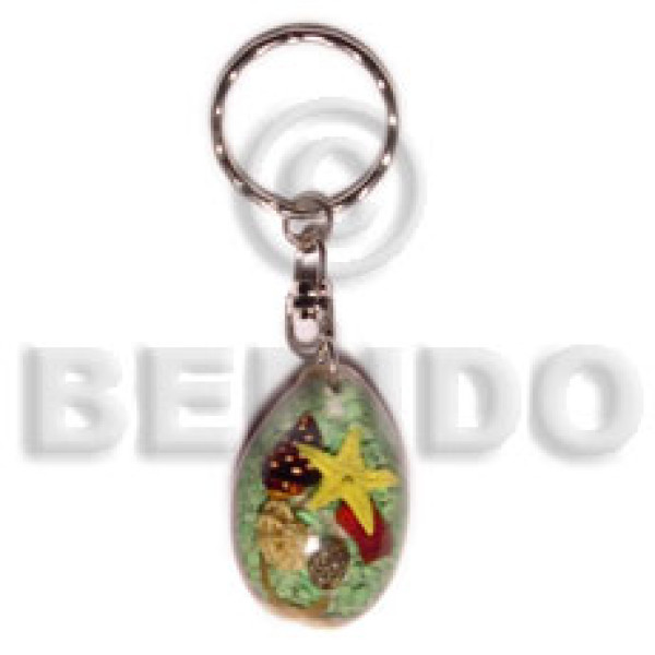 52mmx36mm transparent light green clear resin fish laminated seashell and starfish keychain / can ..