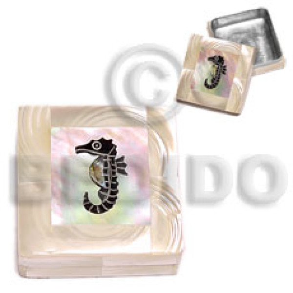 stainless square metal casing inlaid troca shell / turtle design from asstd. shells..