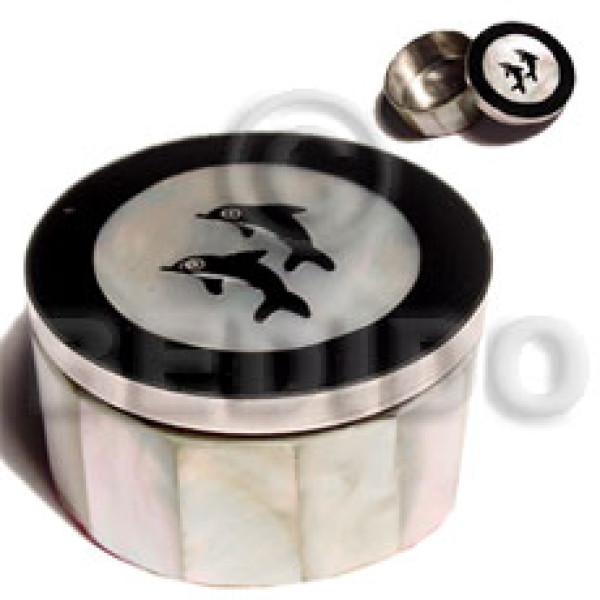 stainless metal casing inlaid blocking troca shell & brownlip / w=3.1cm l=4.4cm h= 2.6cm..