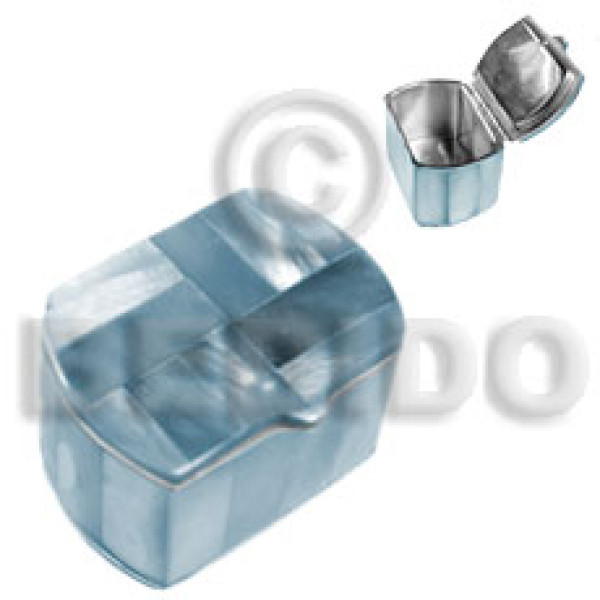 stainless metal casing inlaid powder blue hammershell/ w=3cm l= 4.3cm h= 2.8cm..