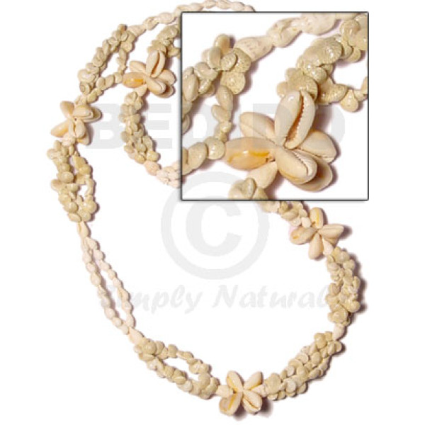 lei / kukui seeds and nat. wood beads in lavender combination nassa shells / 32 in..
