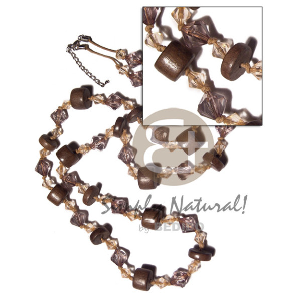lei / rubber seeds wood beads wrapped in orange glass beads combination - 32 pcs/ 34 in.adjustable..