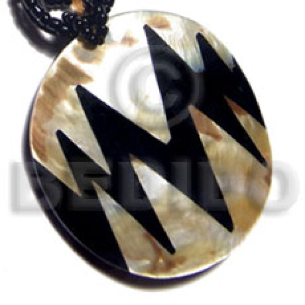 52mmx25mm cracking laminated brownlip/MOP shell inlaid metal and resin backing pendant..