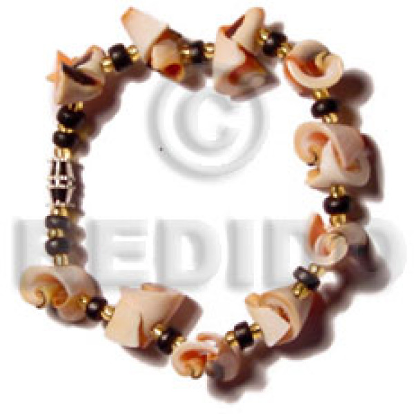 4 pcs. zebra kukui nut buri tiger seeds, white rose, metallic wood beads combination in endless met..