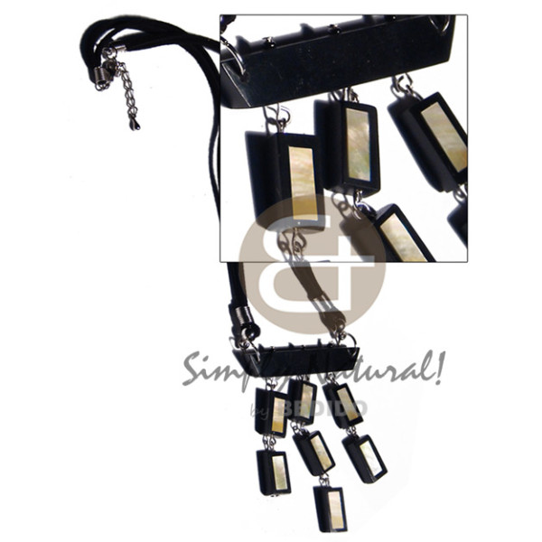 dangling 7 pcs. 17mmx9mm laminated MOP bars resin backing in double leather thong..