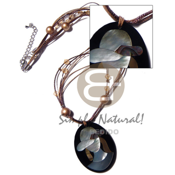 40mmx15mm laminated MOP/blacktab combination resin backing in leather thong..