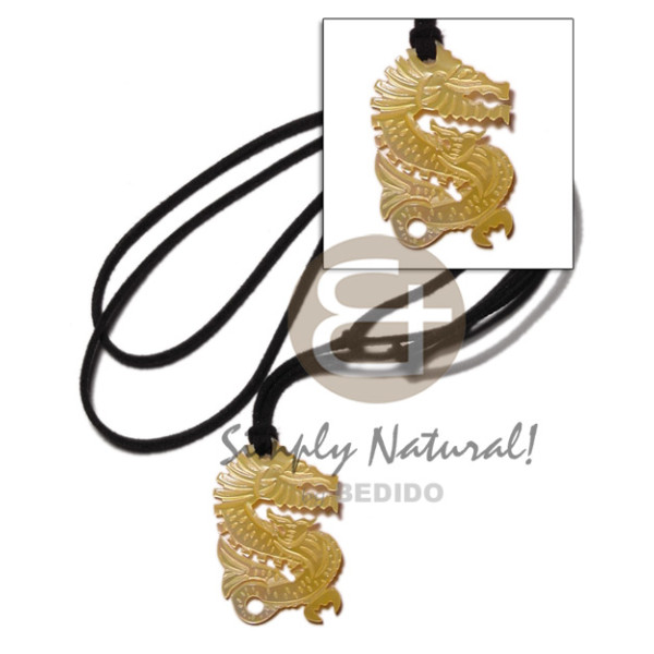 50mmx15mm laminated and embossed blacklip resin backing in black leather thong/ 18in..