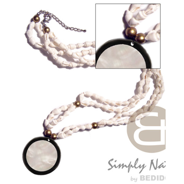 45mm round kabibe shell in black resin backing on 26in. double row white nassa shell neckline gold ..