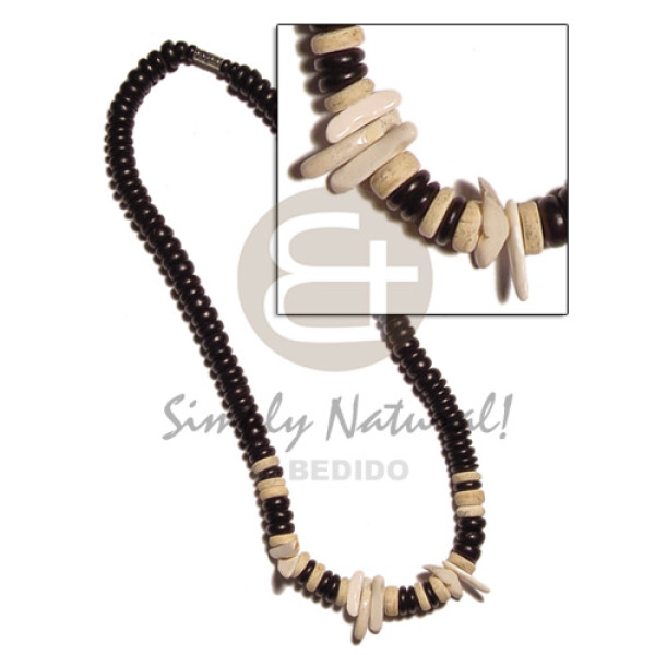 45mm coco nat. white burning on a 22in. 4-5mm nat. white coco heishe neckline silver mouth shell ..