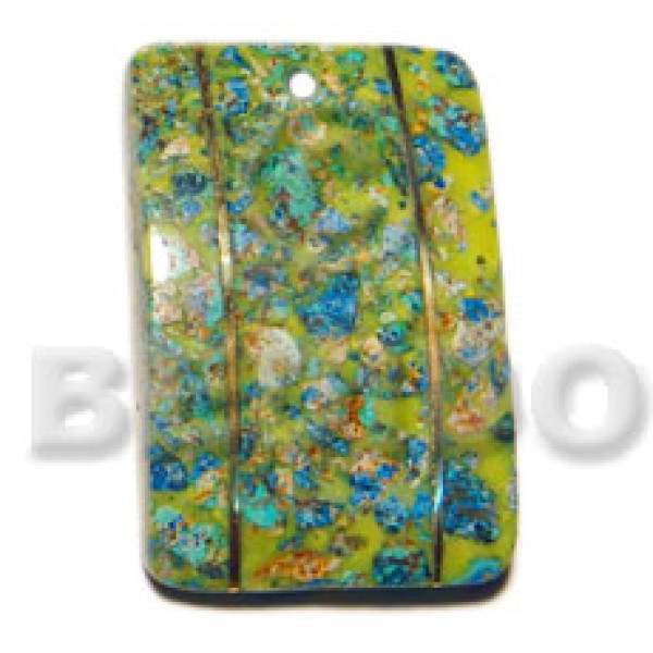 55mmx27mm laminated rectangular paua/kabibe shell combination 5mm black resin backing..