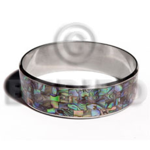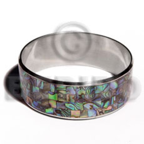 laminated paua blocking in 3/4 inch stainless metal / 65mm in diameter..