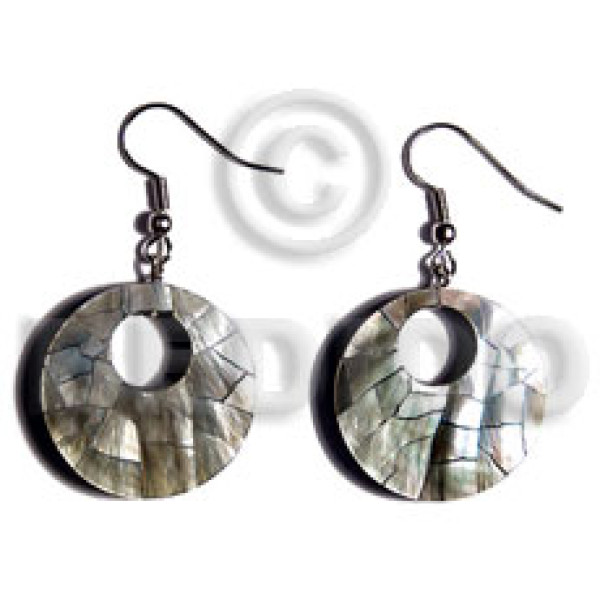 dangling 35mm blacklip ring 30mmx20mm teardrop blacklip in double leather thong..