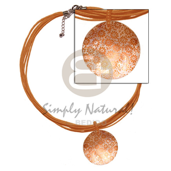 6 layer sunset orange wax cord matching 40mm round handpainted hammershell pendant..