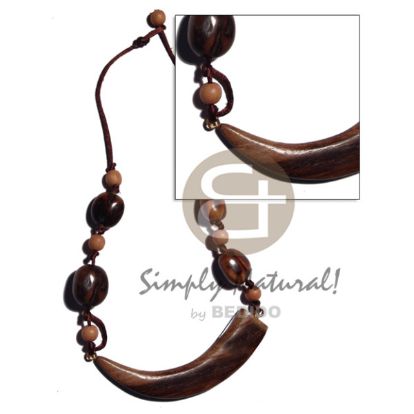 3 rows twisted bayong/ nat. wood brown asstd. wood beads natural form brownlip tiger / 20in...