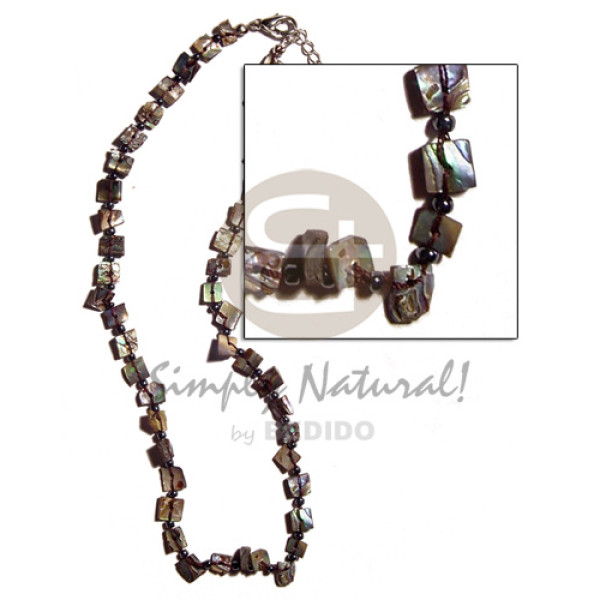55mmx45mm rectangular crackled paua abalone in 3mm black resin backing and 2mm black wax cord / 18in..