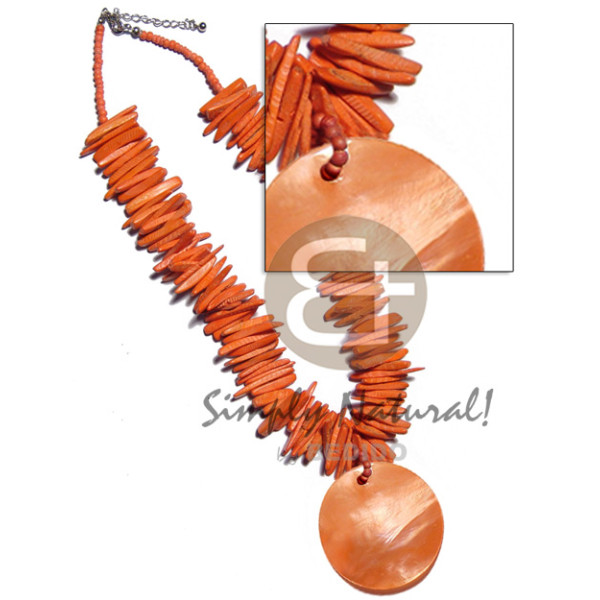tan 2-3mm coco heishe wire choker buri & wood beads accent & brownlip pendant..
