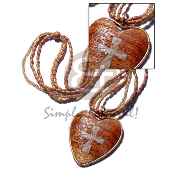 3 rows glass beads/bayong rice beads combination textured heart bayongwood crushed cross troca de..