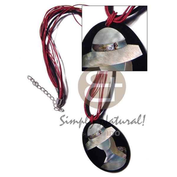 black leather thong pendant -everlasting luhuanus and MOP laminated in 45mmx30mm clear resin black..