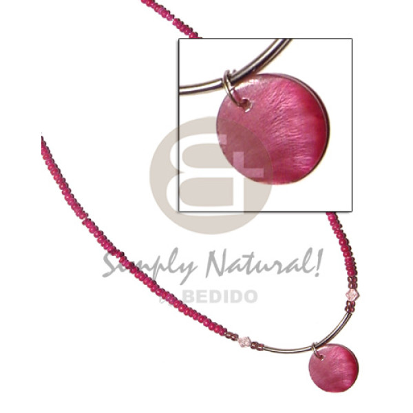 2-3 pink coco Pokalet metal tube and round pink hammershell pendant..