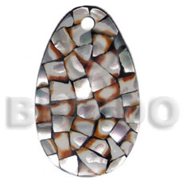 38mmx15mm laminated blacktab/brownlip combination resin backing in leather thong..