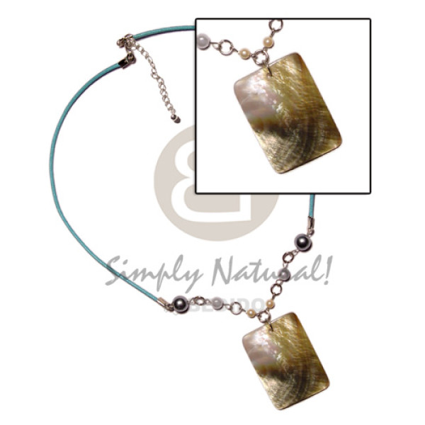 40mm rectangular blacklip pendant pearl beads in wax cord..