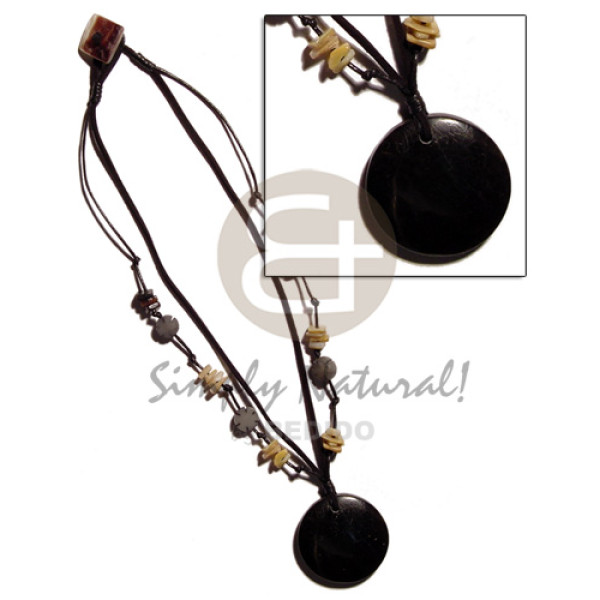 round 40mm blacktab shell cracking resin backing in 2 rows leather & wax cord buri & shell beads a..