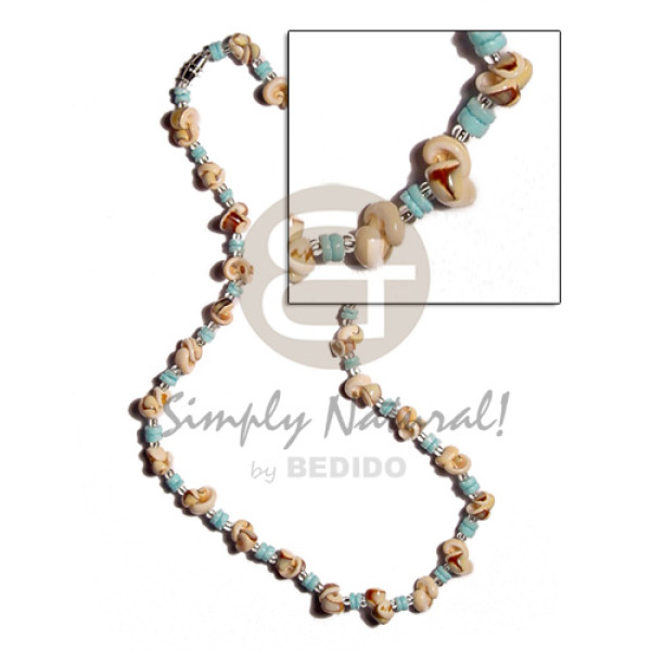 popcorn luhuanus white clam dyed powder blue & glass beads combination..