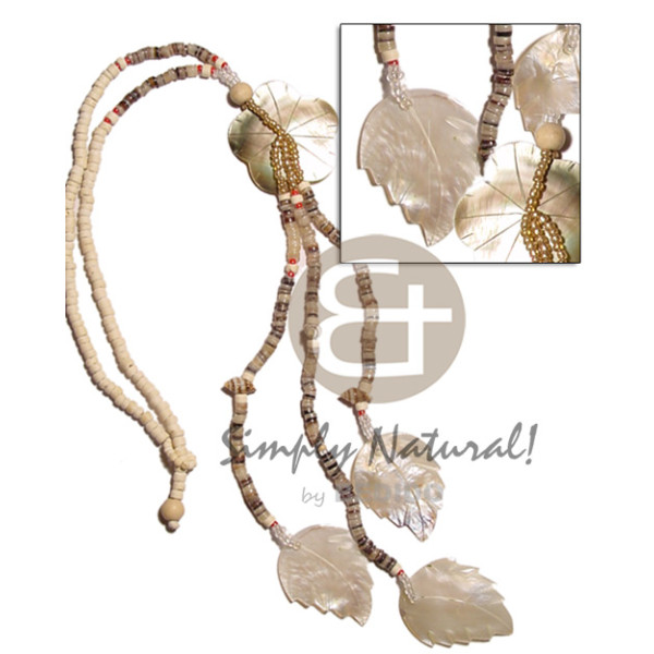 4-5mm coco heishe bleach 35mm blacklip flower and hamershell heishe tassles and 3 dangling 35mm ham..
