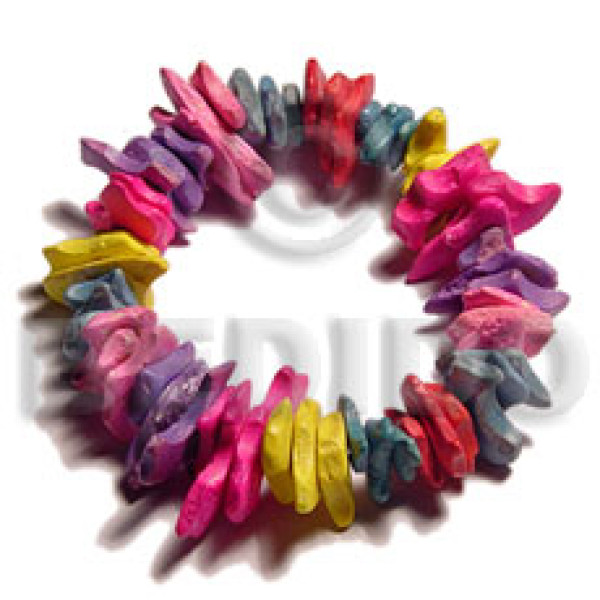 2-3mm coco Pokalet. nat. brown hoop wire bracelet/adjustable shell & wood beads..