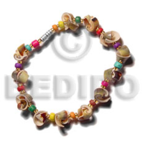 twisted black coco pokalet & rose coloured troca beads gold beads..