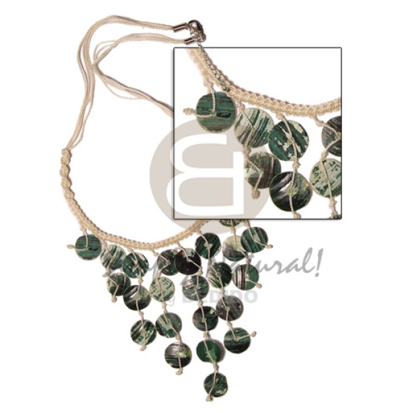 braided flat abaca choker 5 pcs flower sigay/cowrie shells and green mongo shells accent / 16in. ..