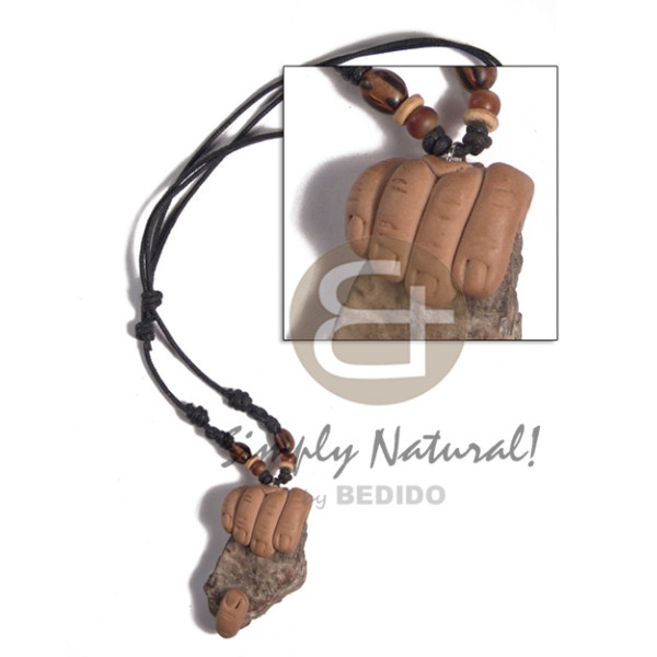 50mm cowrie tiger shell fang clay fingers / adjustable black wax cord /tribal clay series..