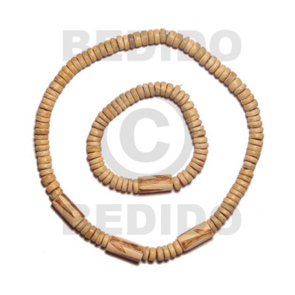 6mm round nat. wood beads palwood cubes and 12mmsaucer wood bead in silver color combination /16in /..