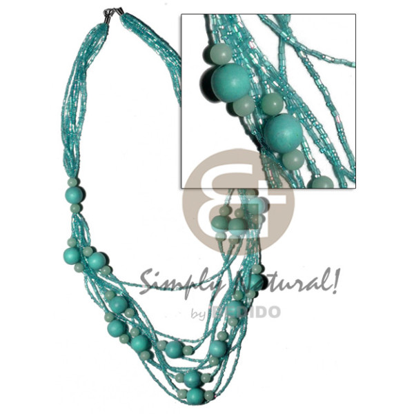 5 rows graduated multilayered cut glass beads buri seeds and wood beads accent/aquamarine tones ..