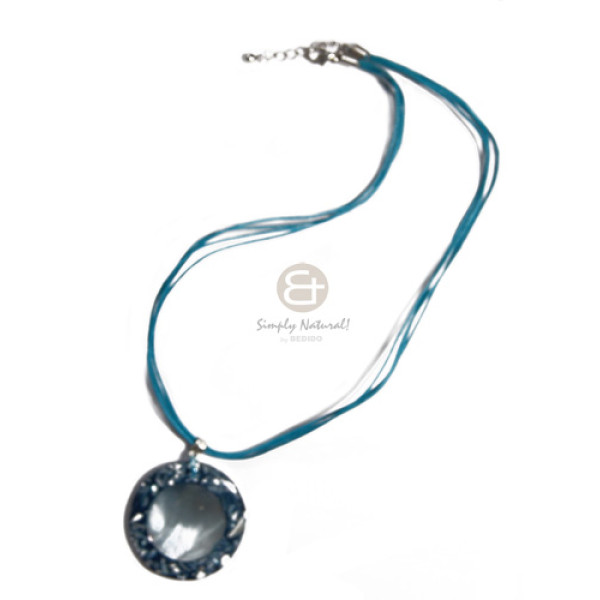 laminated MOP in 40mm navy blue resin 4 rows wax cord / 16in..