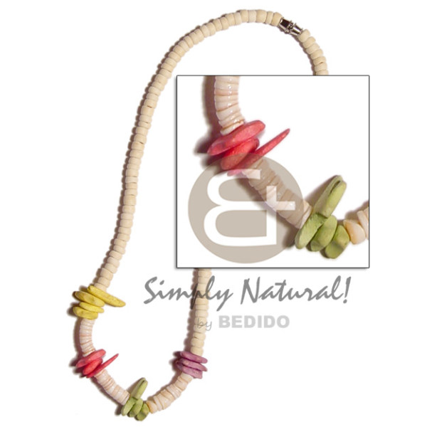 40mm dyed hammershell flower 2-3mm coco heishe green and white clam alt...