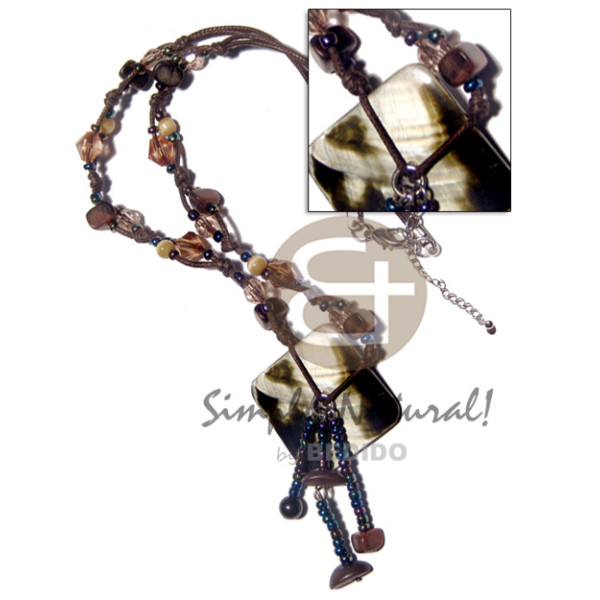 40mmx35mm rectangular blocking brownlip tiger in laminated resin in 10 rows 2-3mm coco heishe and cu..