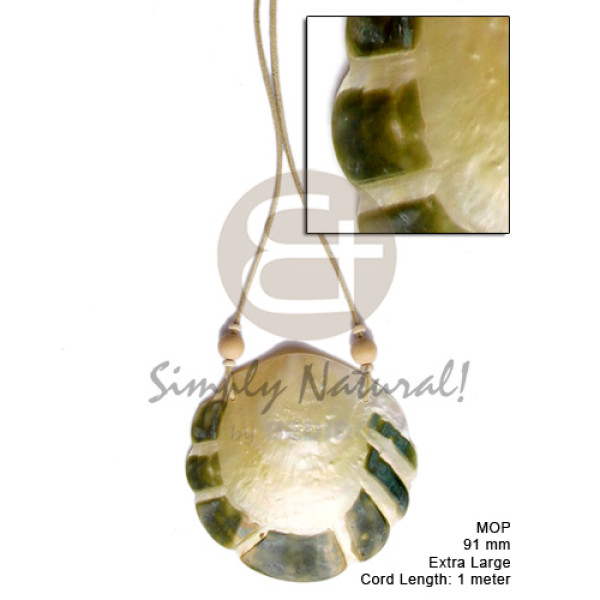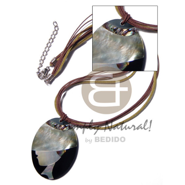 50mmx37mm oval kabibe shell in black resin backing on 34in. double row white nassa shell neckline b..