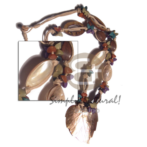 braided leather 65mm ( approximate/ in varying sizes) shell nito holder pendant / 18 in..